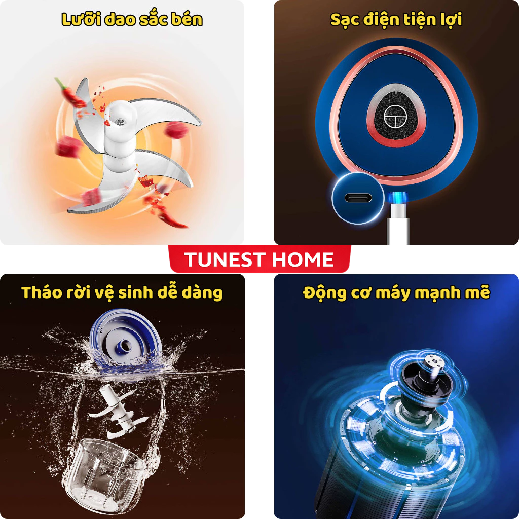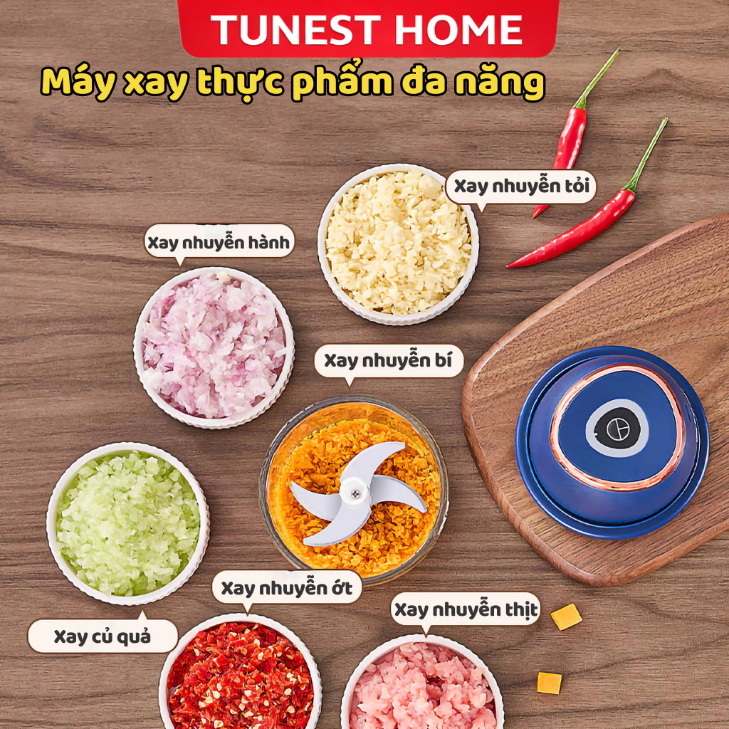 Máy xay mini không dây là lựa chọn tiện lợi giúp bạn sơ chế thực phẩm nhanh chóng mỗi ngày. Sản phẩm có thiết kế nhỏ gọn, dễ sử dụng, phù hợp để xay tỏi, ớt, gừng, thịt, rau củ, trái cây, đậu phộng và nhiều loại nguyên liệu khác.